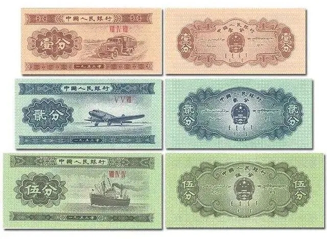 纸分币有1953年和1981年两个印刷版本,这是因为到70年代末,由于经济发展的需要,之前投放的纸分币不够用了,所以央行又印刷了一部分纸分币投放到市场。
