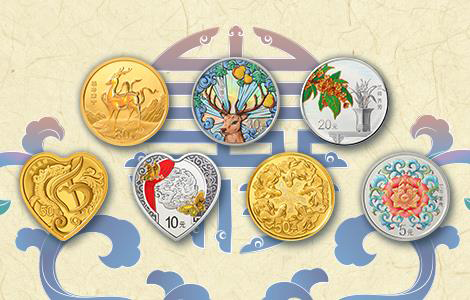 该套金银纪念币正面图案均为“吉祥”文字造型,衬以中国传统吉祥纹饰,并刊国名、年号。